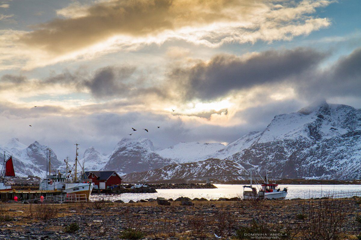 I absolutely loved the views! Lofoten Islands are stunning both in winter and in summer. And I also loved that it was not that terribly cold, due to Gulf Stream warming up the area, keeping the temperature around 0*C. We were also quite lucky with the weather. I can definitely say that I am in love with the place. :) We did spend most of the day driving around, stopping here and there to take some shots. You can even see that some photos were made from the car, as not every area had a place to park the car. A friend, who was driving would slow down, or stop for a second, I would take a photo and we would resume. The traffic was very low in most places, that's why we were able to do it like this.