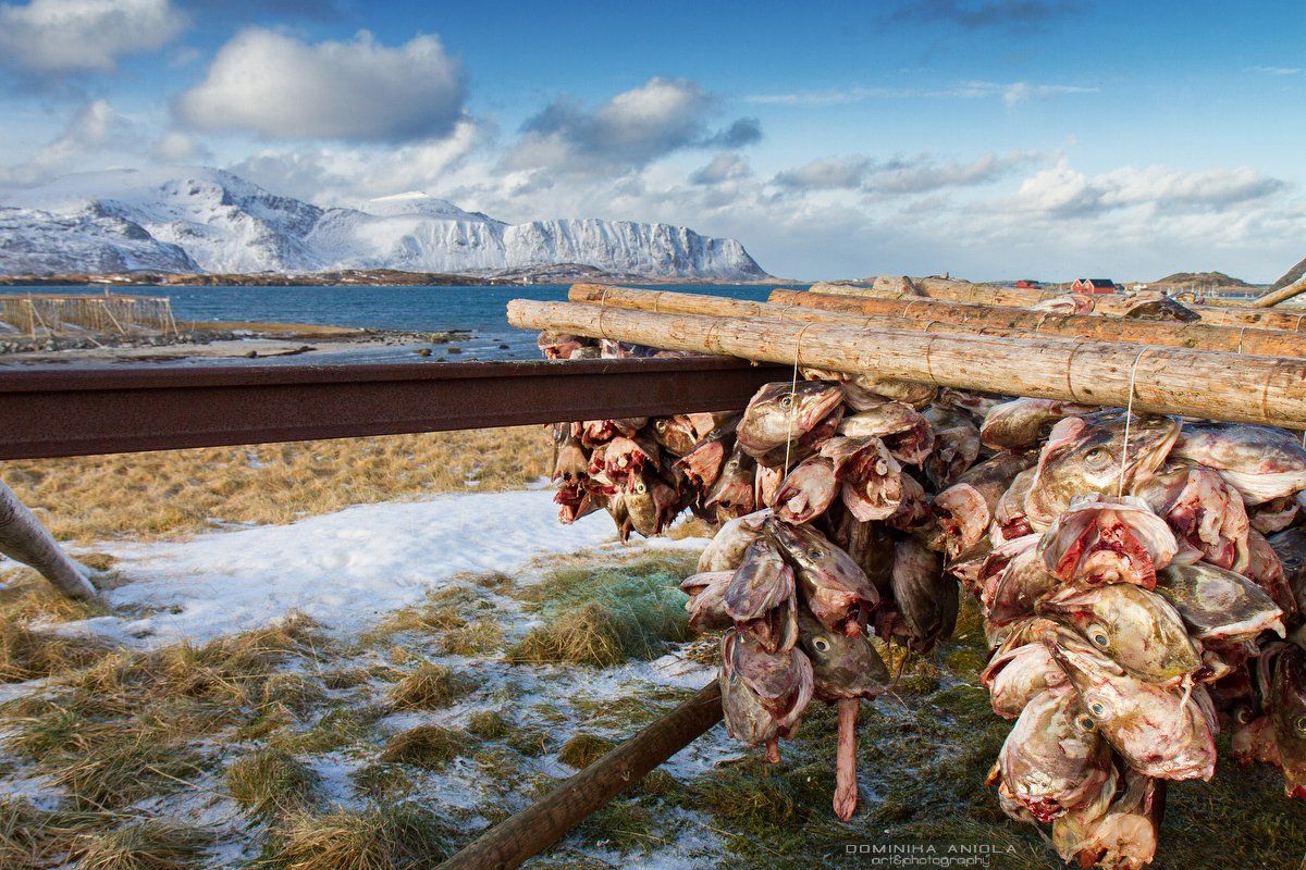 Our last day on Lofoten Islands and our last full day of sightseeing. At one place we did see a lot of cods, drying in the winter air. They are left there for around 3 months. There were plenty of those instalations around Lofoten, but not many had fishes on them. Interesting fact is that cod heads are sold to Africa, mainly Nigeria, where they are used in traditional dishes, as a main ingredient. We also had a chance to taste such dried fish (not the head), given to us by a local man. I'm just gonna say that it was reaally dry. ;) It required a lot of chewing.