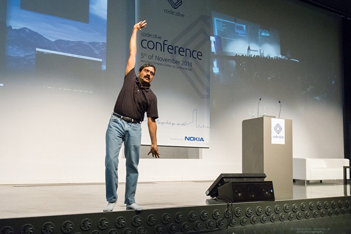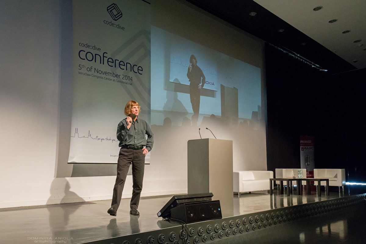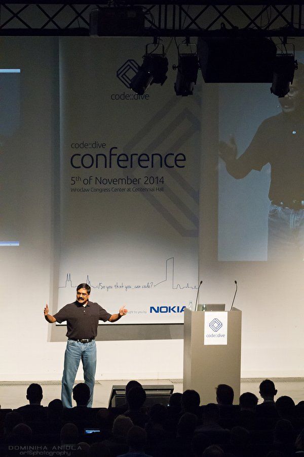 During 2014 I was involved in preparing a programming conference in Wrocław called code::dive, organized by Nokia Wrocław. It was a first edition but it went quite well, doing this was exciting but also exhausting to me. During the big day I was responsible (among other people) for photographic documentation of the event, some of my photos were then shared to press and blogs. This kind of job was a first for me and I really loved doing it. I would like to share some of the photos from that day that I personally like.