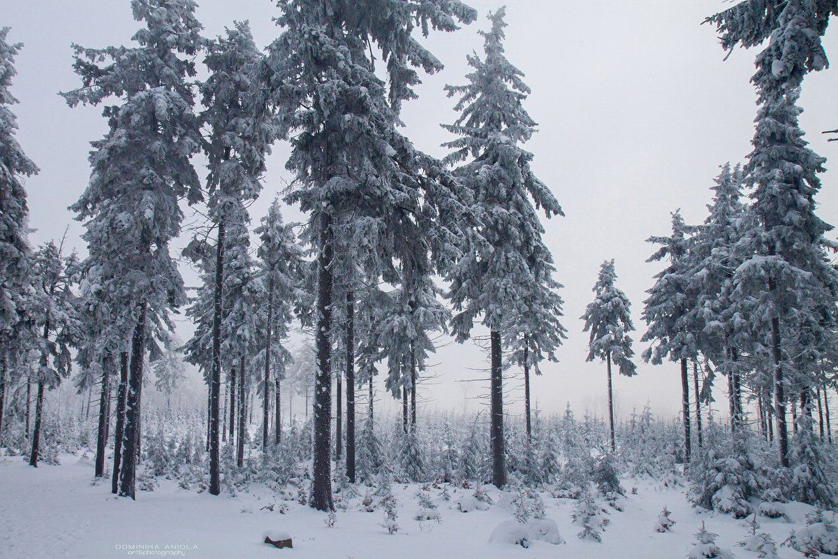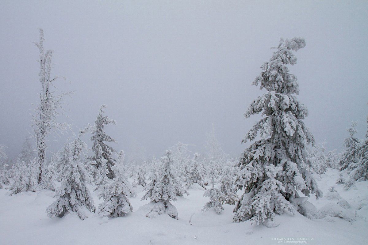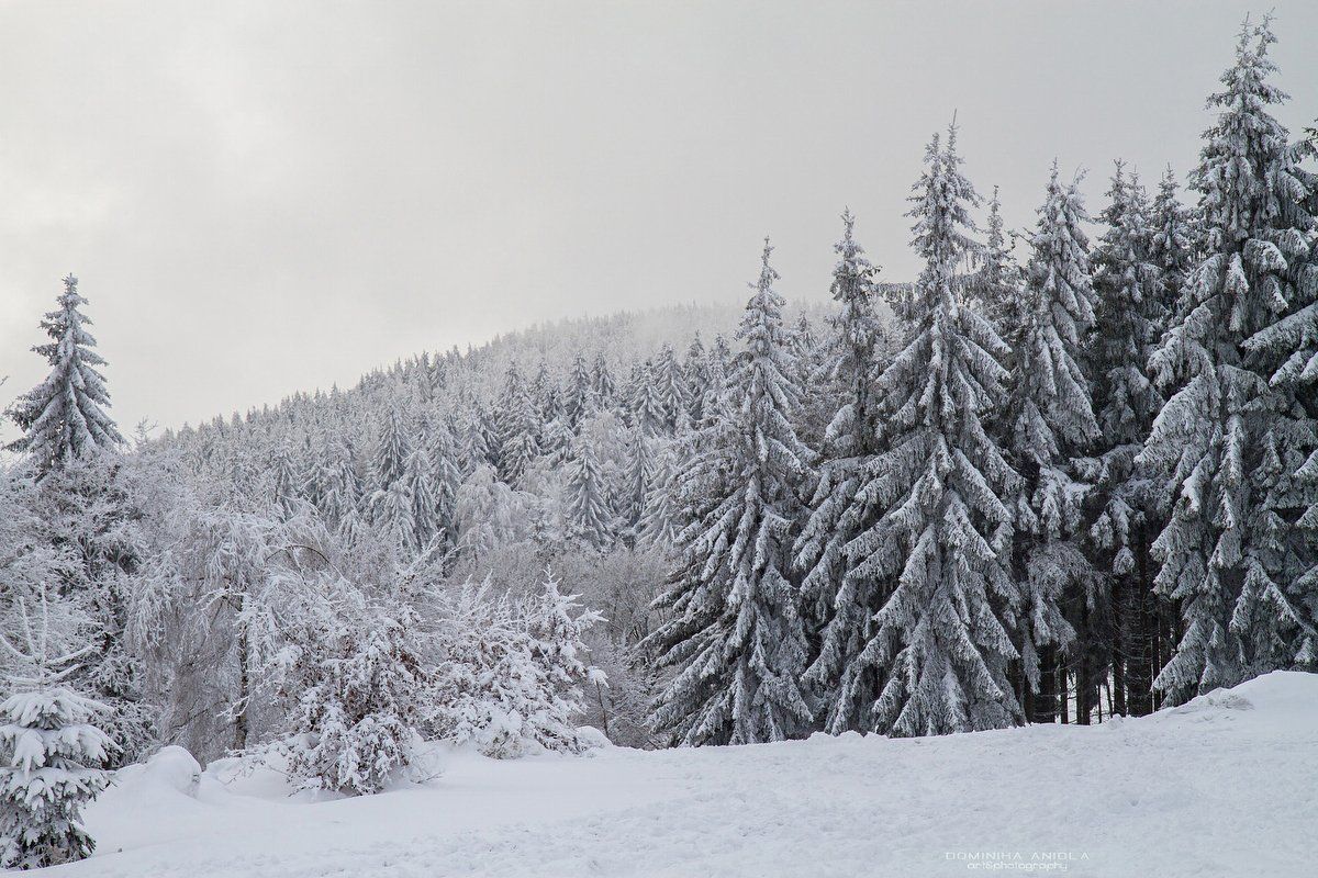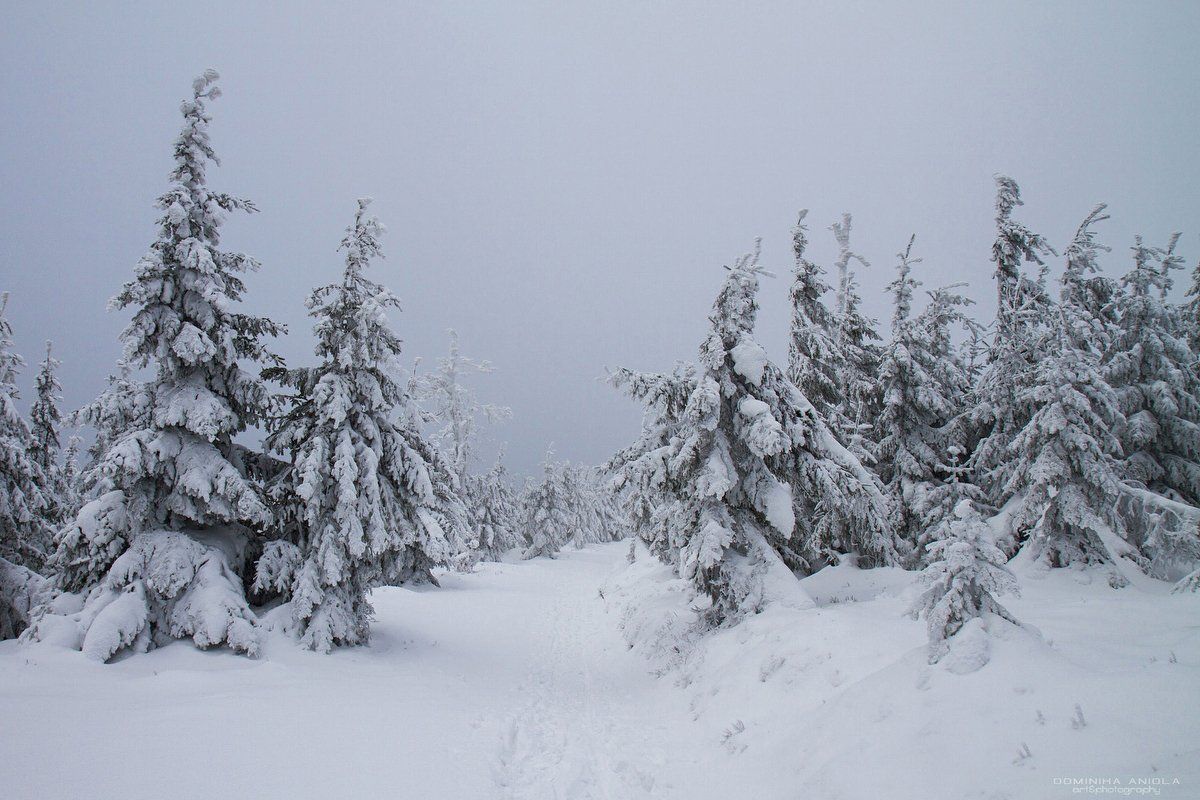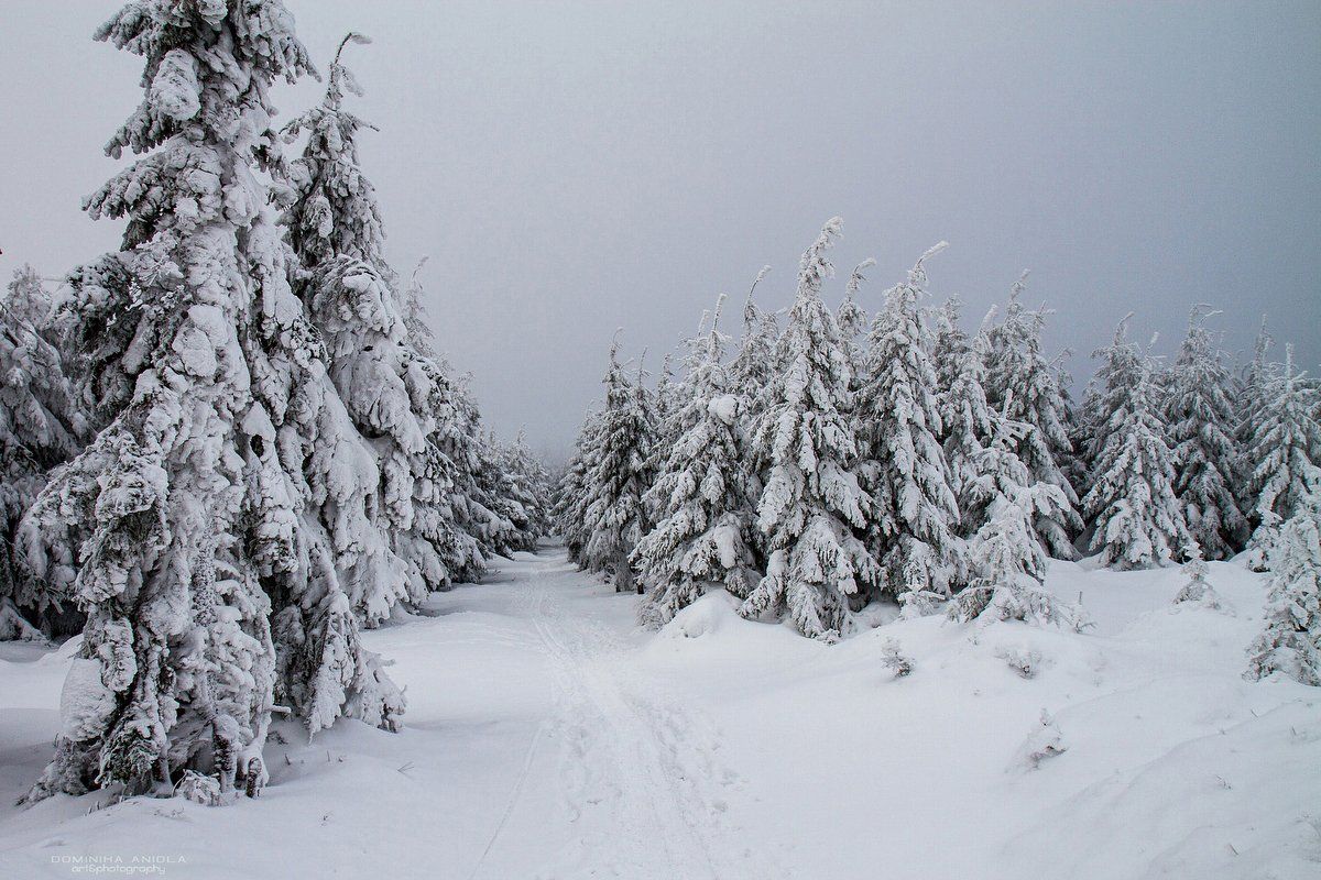 I was starting to fell itchy just sitting around on my butt and I needed to go somewhere and change my surroundings. I figured hiking would be nice, thought about a place that will not be too much exhausting, as I didn't hike for a few months, also not too far away, and there I was - Owl Mountains. The weather was good, around 0*C, almost no wind, beautiful snowy landscapes. The one thing that was missing was a little bit of sun. A lot of people had the same idea for that day, but that didn't spoil anything.