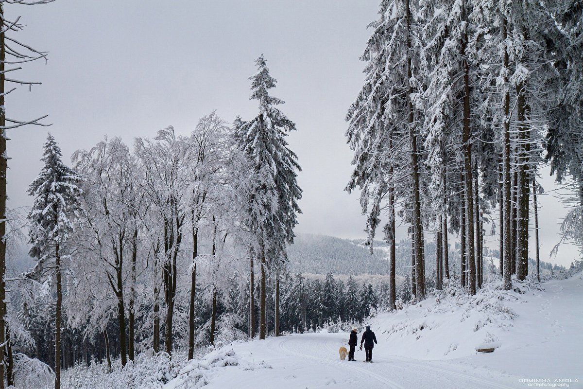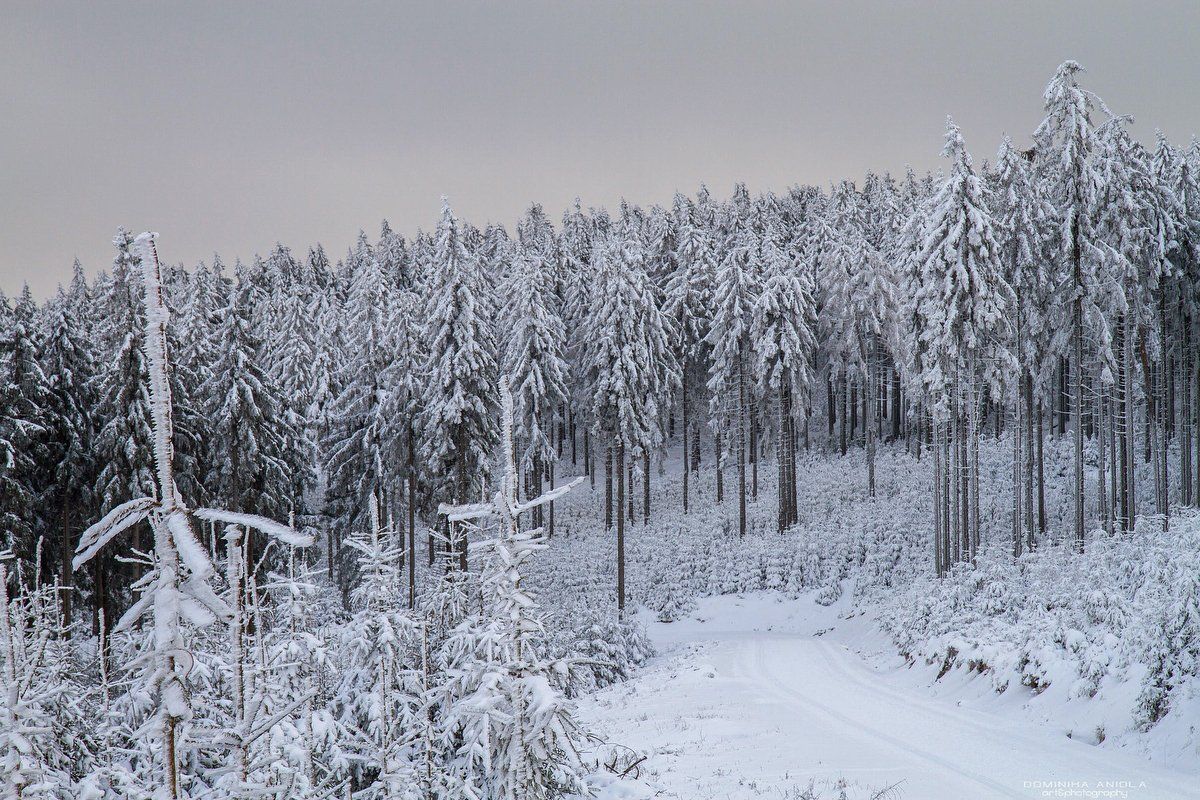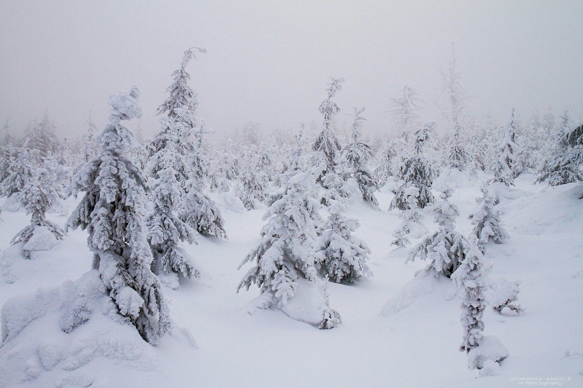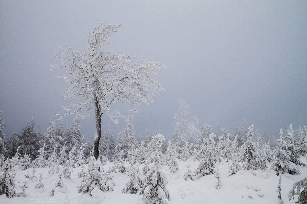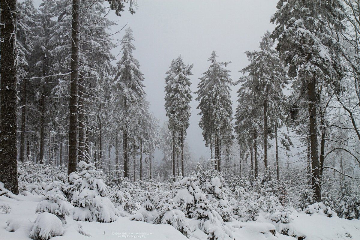 I was starting to fell itchy just sitting around on my butt and I needed to go somewhere and change my surroundings. I figured hiking would be nice, thought about a place that will not be too much exhausting, as I didn't hike for a few months, also not too far away, and there I was - Owl Mountains. The weather was good, around 0*C, almost no wind, beautiful snowy landscapes. The one thing that was missing was a little bit of sun. A lot of people had the same idea for that day, but that didn't spoil anything.