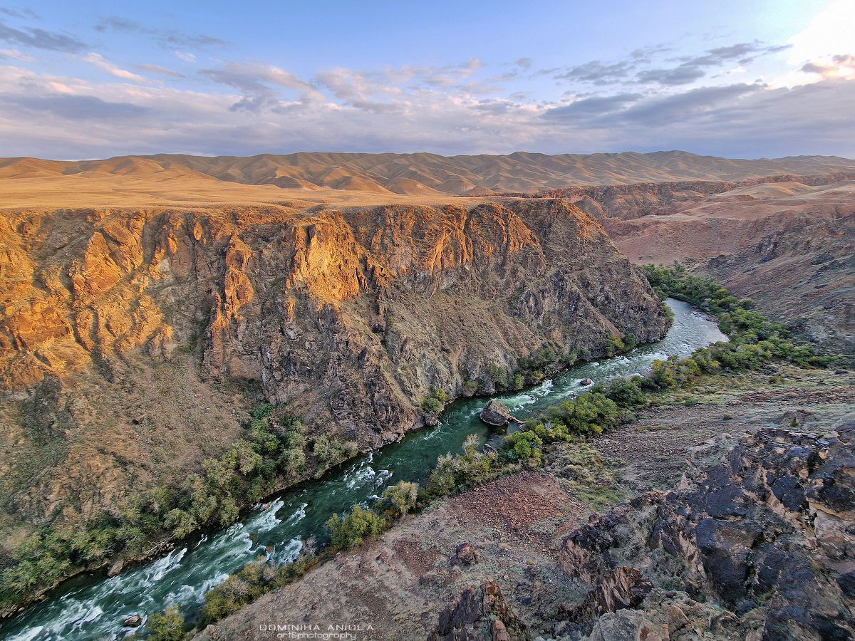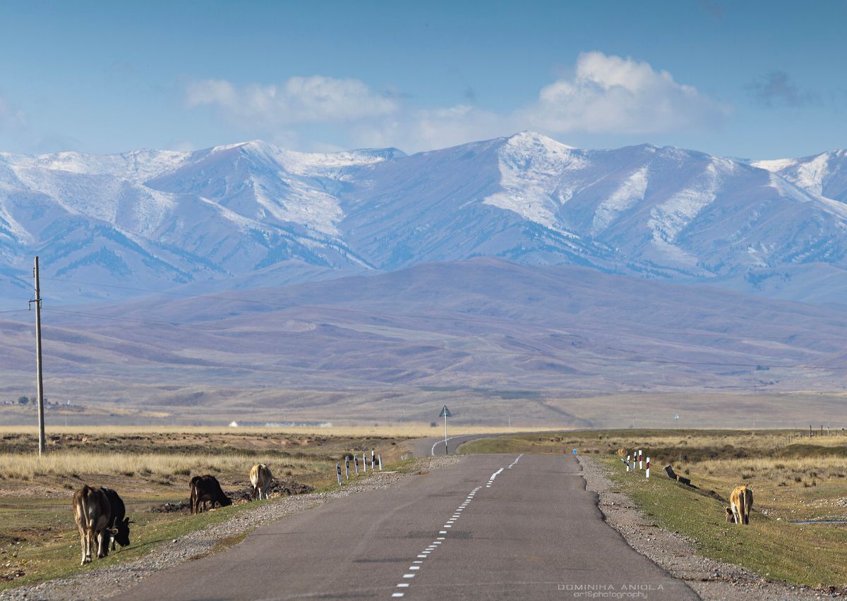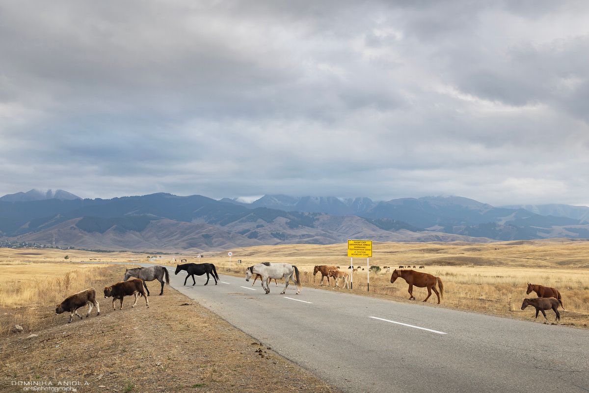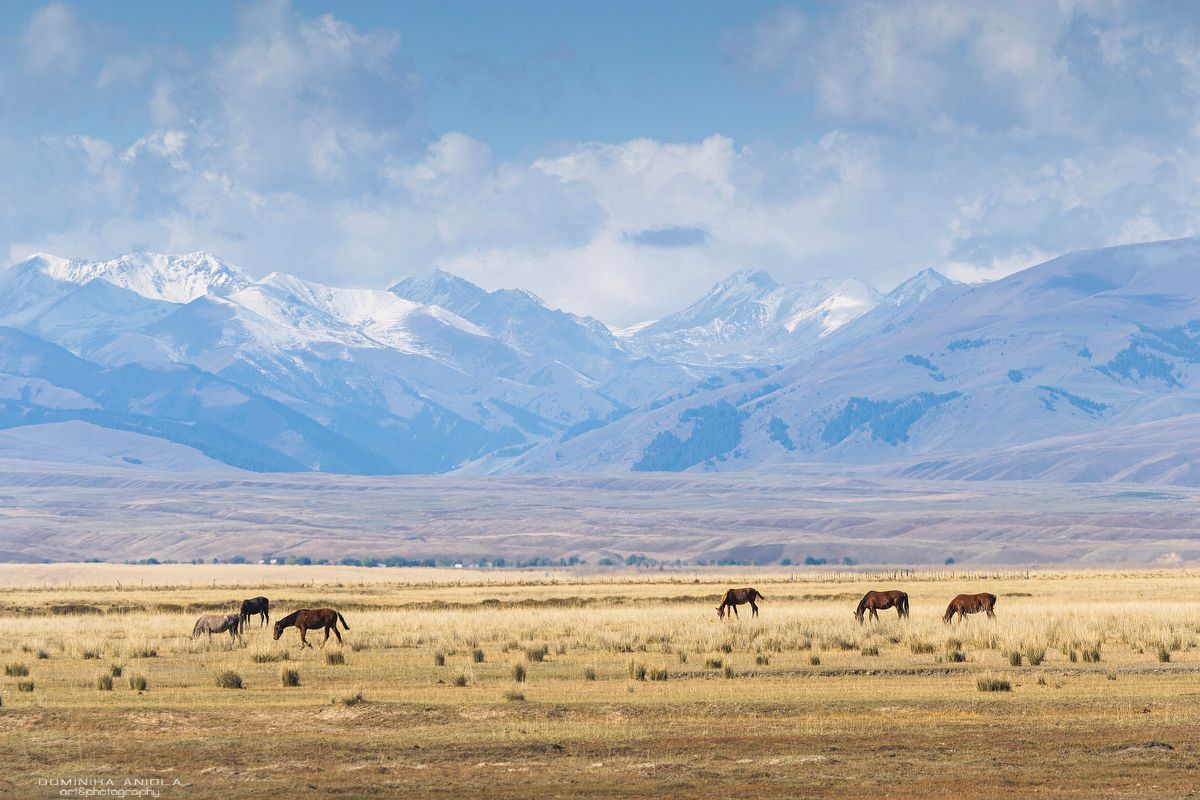This felt like the first, real day, that I would see and experience, what the Internet had told me about Kazakhstan. Steppes, enormous spaces, horses. Aaaand heat haze. :) Most of my day was me driving from Kenge towards Kandyi Lake. It took quite the long time, because I would constantly stop to take some photos. I was absolutely in love with the landscape and horses roaming with snowy peaks behind them.