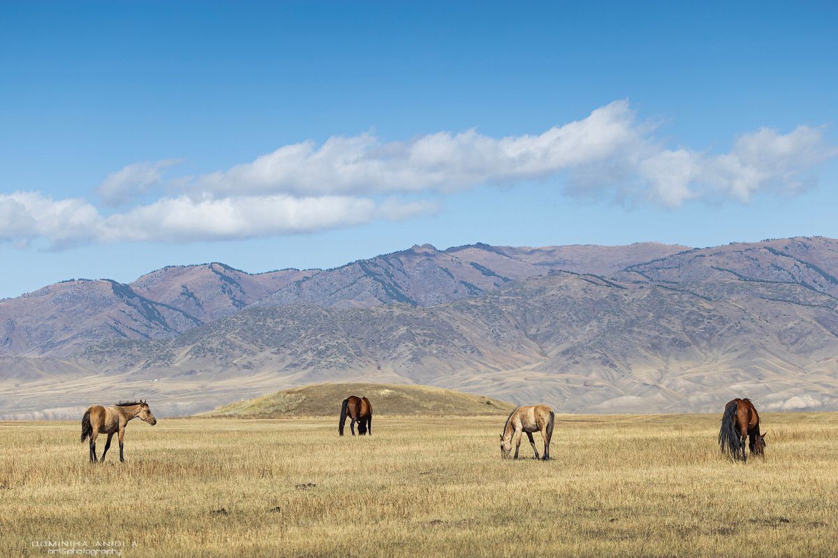 Horses were a bit uncooperative to photograph in a sense they would have their heads down, eating grass most of the time. Just to get few shots with their heads up, it required some waiting. And they are not at all like Icelandic horses that are very curious and like to come close to visitors. Kazakhi ones didn't really care for my and ignored me or walked away.