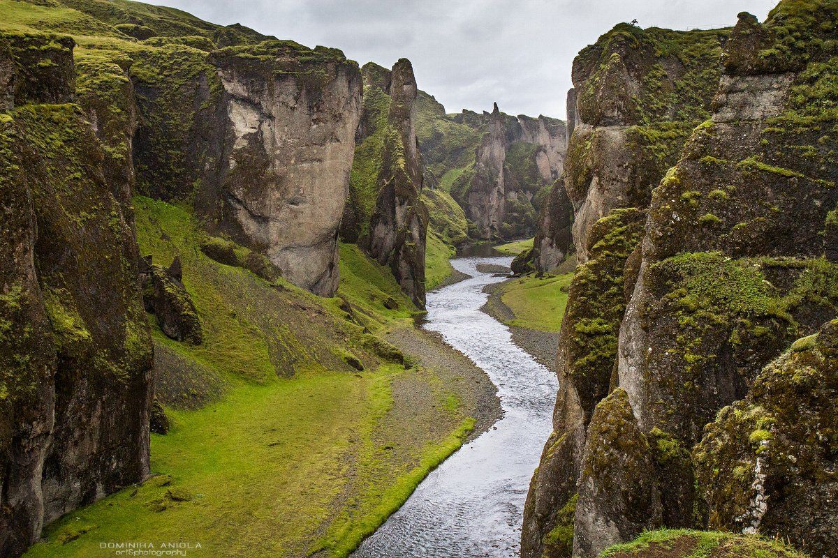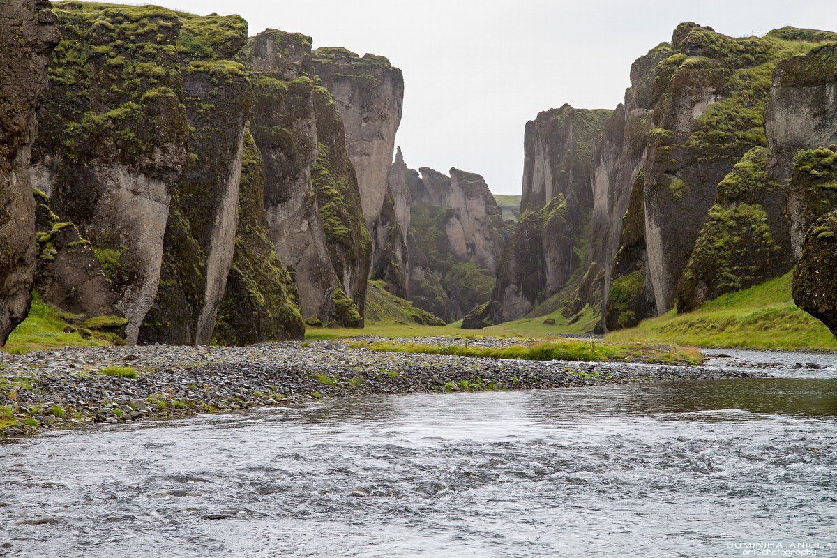 Kolejnym ciekawym przystankiem w naszej podróży był wąwóz Fjadrargljufur. Ostatnie kilka kilometrów przed wąwozem było całkiem zadbane i mijaliśmy pola żółto-zielonego mchu na skałach. Bardzo surrealistyczne otoczenie. Sam wąwóz był naprawdę magiczny, nawet w deszczu, który nas tam przywitał. Miałem nadzieję, że uda mi się zejść na dół, ale woda była zbyt wysoka, aby wejść do środka w butach trekkingowych. Więc tylko szlak na górę, ale to było magiczne.