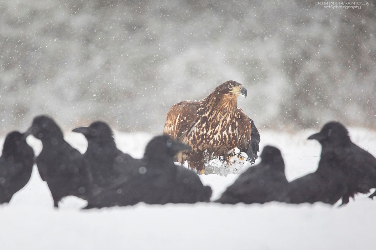 White-tailed eagle and ravens,