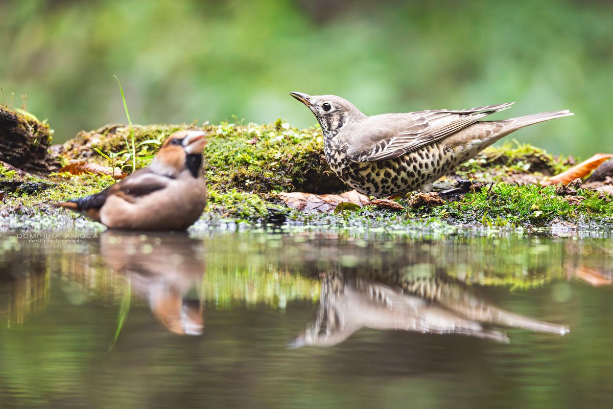 Song thrush and hawfinch,